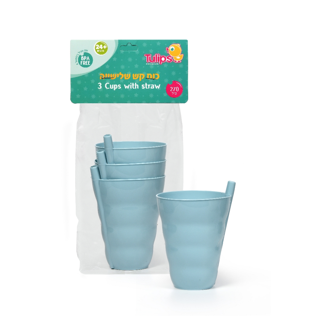 כוס קש שלישייה תכלת-טוליפס