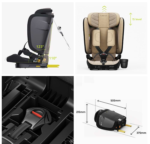 תואם לתקן I-Size המחמיר, כולל חיבור איזופיקס נוח וזמזם ייחודי המתריע על קשירה לא תקינה.