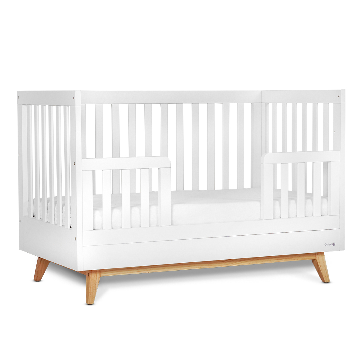 2 ב- 1 – מיטת תינוק שהופכת גם למיטת מעבר – על ידי מספר פעולות פשוטות תוכלו להתאים את מיטת התינוק למיטת מעבר המתאימה בגובה לתנועה עצמאית ובטוחה של הפעוט. ניתן לחבר מגן יעודי למיטת מייסון