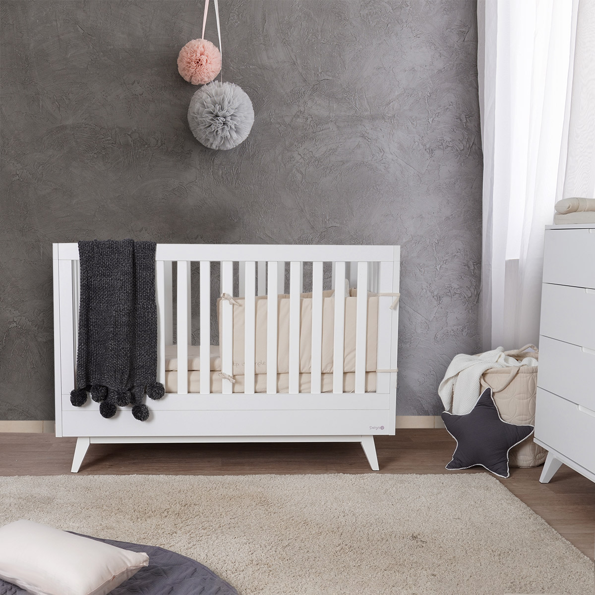 מיטת תינוק מייסון בעלת מראה ייחודי ומרשים, עיצוב מודרני עכשווי, תשדרג את חדר הילדים ותכניס שיק לחלל.