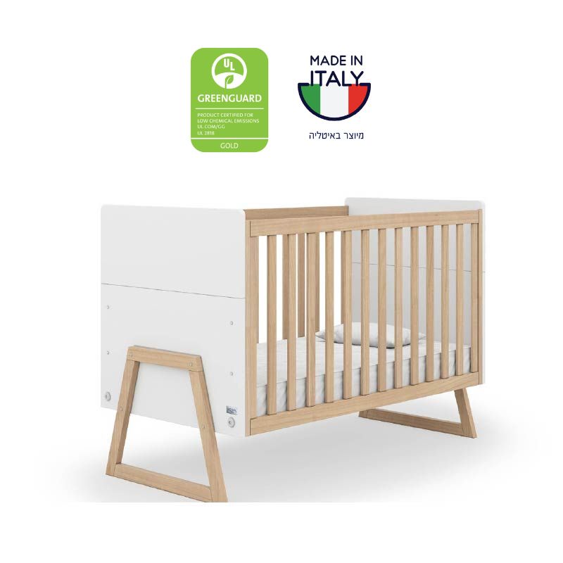 מיטת תינוק רום צבע לבן בשילוב צבע טבעי מבית רהיטי סגל