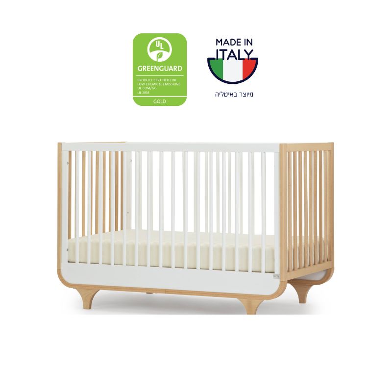 מיטת תינוק ג’ולי צבע טבעי בשילוב צבע לבן מבית רהיטי סגל